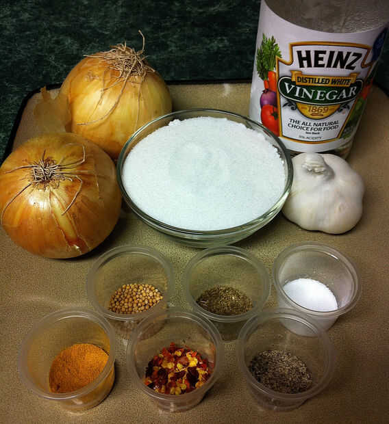 Después de medir todas las especias, coge unas cuantas cebollas, una cabeza de ajo y una botella