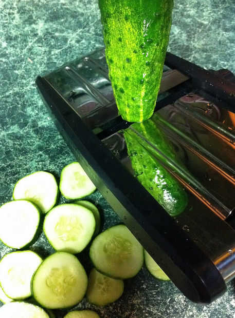Por lo general, una mandolina tiene un dial ajustable para diferentes espesores. Este gadget hace