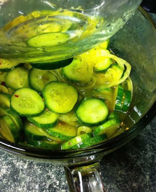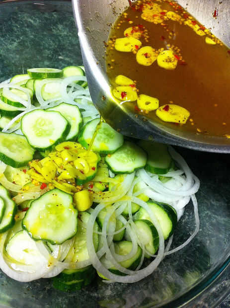 las cebollas y pepinos. Asegúrese de mezclar bien. Si la salmuera