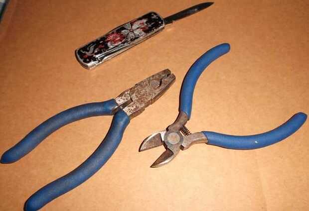 Alicates o Tijeras romas antigua para doblar los ganchos.