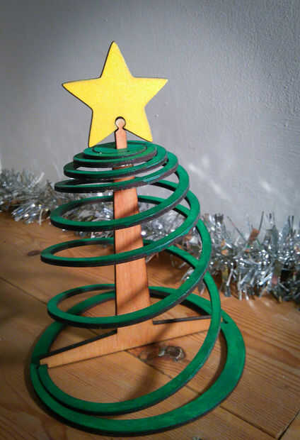 He estado mirando algunos patrones diferentes de corte para contrachapado flexible (viven las bisagras, Super flexible doble curvatura superficial, láser curvo doblado madera) y con mi propia. En el camino tropecé a través de un desafío de tres ingrediente aquí y consiguió preguntándose qué podría hacer en 3d que utiliza no más de tres piezas planas de madera. Y ya es casi Navidad...