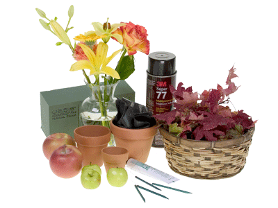 3M pegamento de aerosol Super77 (de su tienda de suministros de oficina local), la bolsa de basura plástico pesada y ollas de barro en varios tamaños, desea por lo menos 1 pote por persona. Los niños mayores pueden ser capaces de completar 2 o 3. Sólo uno es suficiente para los niños pequeños. Si solo eres tu haciendo los arreglos hacer tantos como quieras.