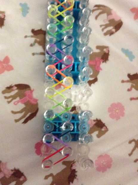 de hoy voy a mostrarte cómo hacer una pulsera de cable en el telar del arco iris es una pulsera de nivel intermediaria, pero a veces caen aparte pero no te enojes solo puede rehacerla solo te estoy dando este aviso ahora. cayó aparte en mí dos veces.