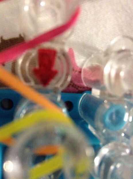 este es un diseño grande y fácil que parece una escalera! Va por supuesto que es el nombre del vamos a empezar!Fuentes:Telar del arco irisBandasGancho1 clip C/SPaso 1: Colocación de bandas Asegúrese de que la flecha es hacia fuera. Tomar una banda y