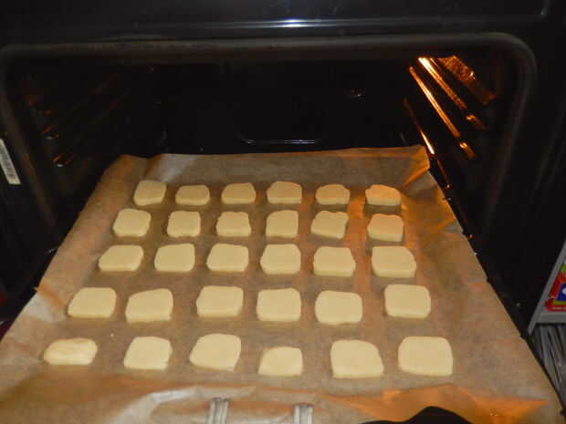 Asegúrese de que el horno esté lo suficientemente caliente introduce la bandeja en el horno y dejarlo durante 15-18 minutos. Empezar a comprobar las cookies después de 15 minutos. Algunos podrían obtener carbonizados si fueran un poco más delgados que otros.