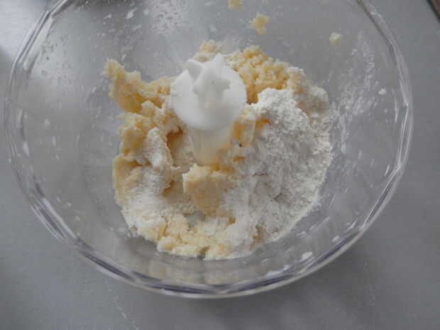 Agregar mezcla harina y polvo de hornear, 1/3 a la vez. Cada 1/3 debe agregarse después de asegurarse de que el último 1/3 se combina bien a la mantequilla y el azúcar.
