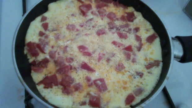 Ingredientes:2 panecillos ingleses5 huevos6 tiras de tocino4 trozos de queso1/4 taza de lechePizca de salPizca de pimientaMantequillaRinde 2 sandwiches.Paso 1: First:Freír 6 pedazos de tocino a tu recomendado: nitidez. Guardar un poco de la grasa en