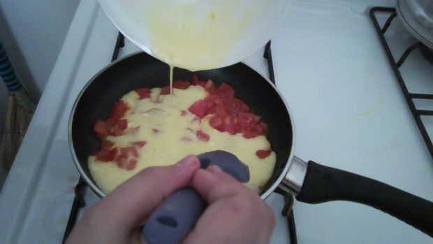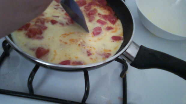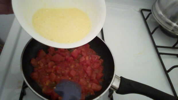 Paso 4: Agregar la mezcla de huevo a los tomates