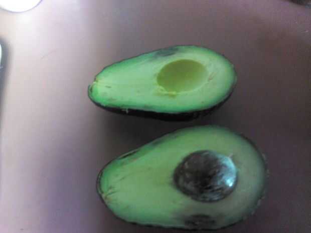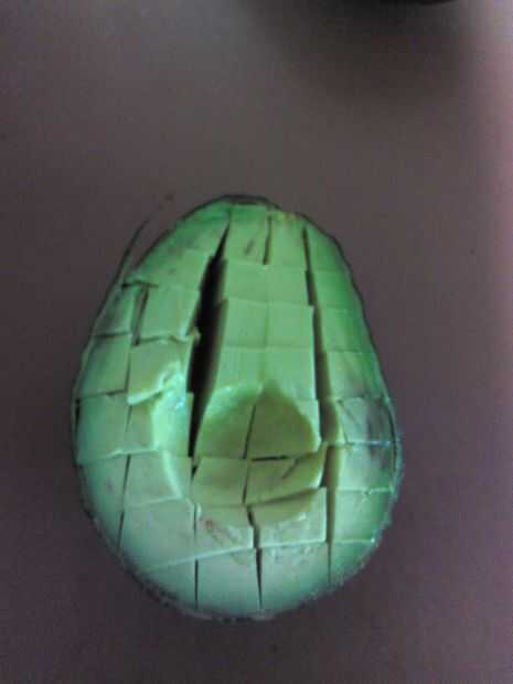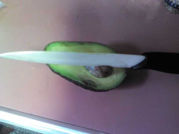 Ahora cortar el aguacate en ambas direcciones. (Esto permite más fácil amasar más tarde)