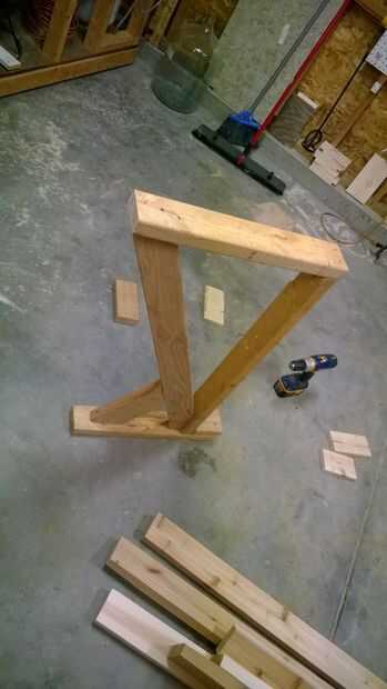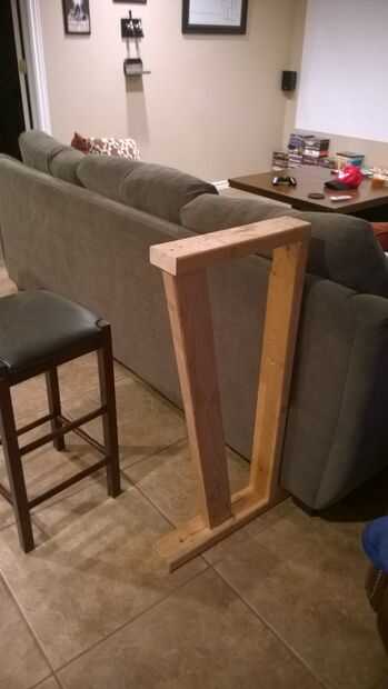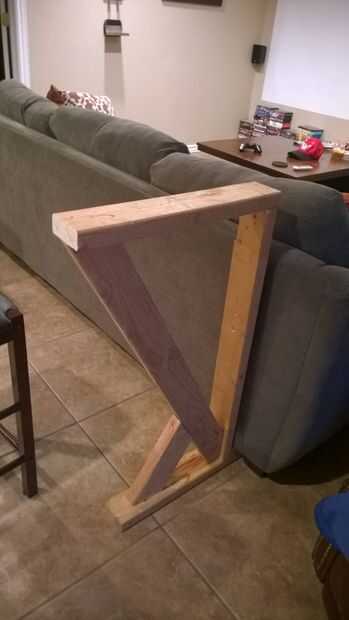He encontrado una manera de hacer un diseño de pierna barato sólida que se deslice debajo de la parte trasera de la cama. He probado estos dos diseños diferentes con restos de madera. El más fuerte fue con dos en soportes. Ese corto 9 pulgadas 45 grados soporte agrega una gran cantidad de fuerza y estabilidad.