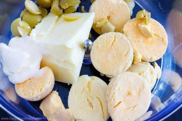 Corta cada huevo por la mitad, sacar las yemas y colocarlas en un procesador de alimentos. Añadir el resto de los ingredientes y procesar hasta que quede suave. Saborearlo. Añadir más condimentos, si es necesario.