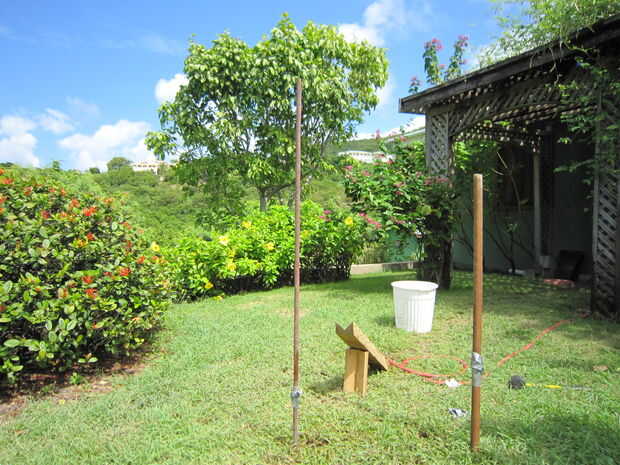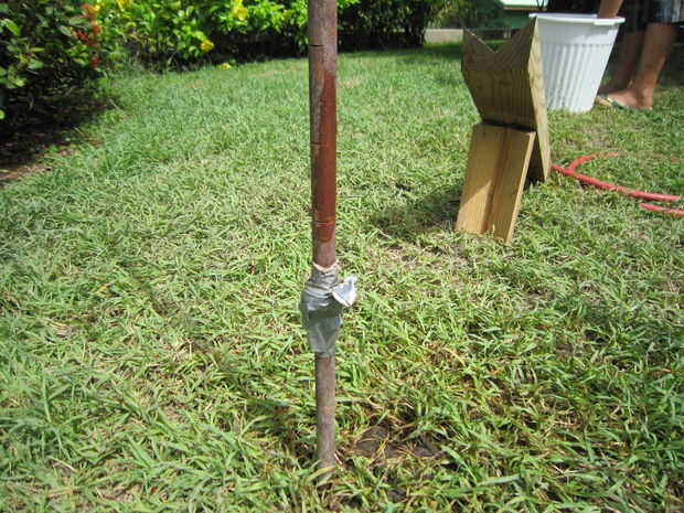 Use un pedazo de tubo de cobre o una varilla.  Libra la varilla o tubo en la tierra.