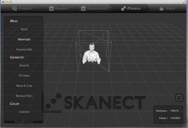 5. proceso del golpe en la parte superior de la pantalla. Sí que sé que el siguiente paso es reconstruir, sino voluntad de reconstrucción sólo volver a analiza lo que acaba de capturar. Si usted tiene necesidad de un modelo de mayor resolución, haga clic en reconstruir--> fusión--> y establecer su fidelidad alta, luego haga clic en ejecutar. Tomará algún tiempo, pero al final se agregarán más detalle para el modelo final. Para el resto de uso, sólo seleccione procesar.