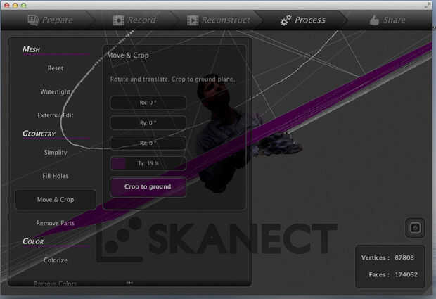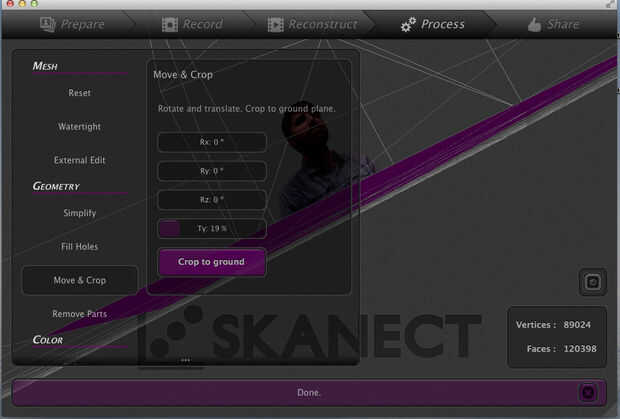 En geometría, haga clic en mover y cultivo, ajuste el Ty: por ciento para que tengamos un hombro hasta la vista y haga clic en recortar a la tierra. Esto ayudará a evitar complicaciones de impresión con un modelo incompleto.