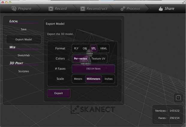 Y haga clic en exportar puede ahora fácilmente importar este STL en Makerware para modificación, escalado e impresión 3D. Tome una clase en Techshop para aprender más.