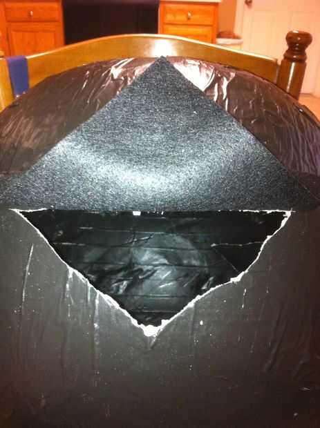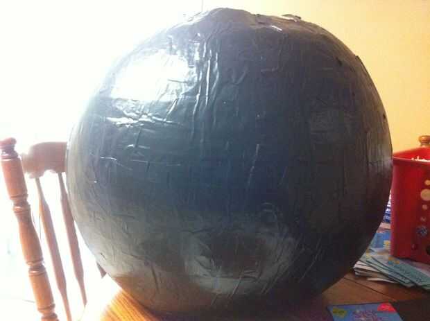 tenía poco de pintura de pintura de una habitación. Una vez que la bola esté seca, y si quieres pintarlo, vaya para él. Creo que la pintura hace que sea un poco más estable y flexible para que los niños corretean. Toma tu pincel y a pintar. Hice el interior y exterior. Entonces deje que la pintura seque. Luego una vez seca la pintura encontrar un lugar para poner las alas donde su hijo se sentirán cómodo. Tomé una hoja de fieltro y cortarlo en dos triángulos, entonces tomé una pistola de pegamento caliente y pega las puntas de los triángulos en donde iba a poner los agujeros del brazo. Luego tomar un cuchillo y con cuidado cortar agujeros debajo de los triángulos para los brazos de su hijo. Si te gusta lo que parece, y cree que el cuello es estable entonces usted podría conseguir una máscara o cortar piezas de fieltro para hacer una cara y pegarlos sobre el cuerpo y termines con tu traje!