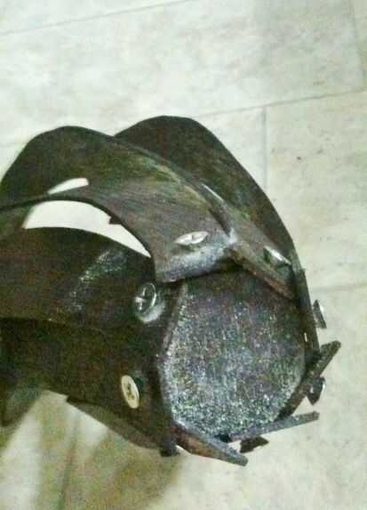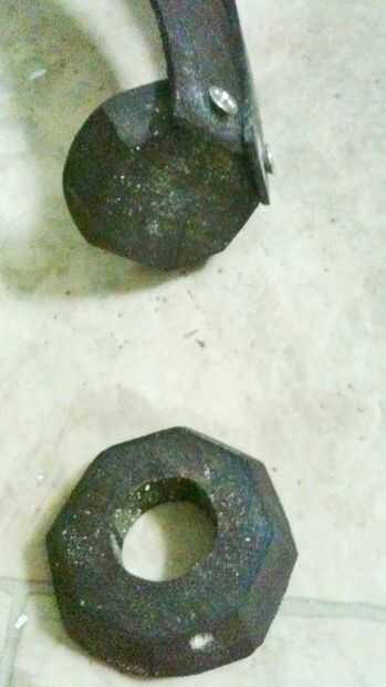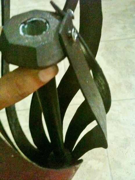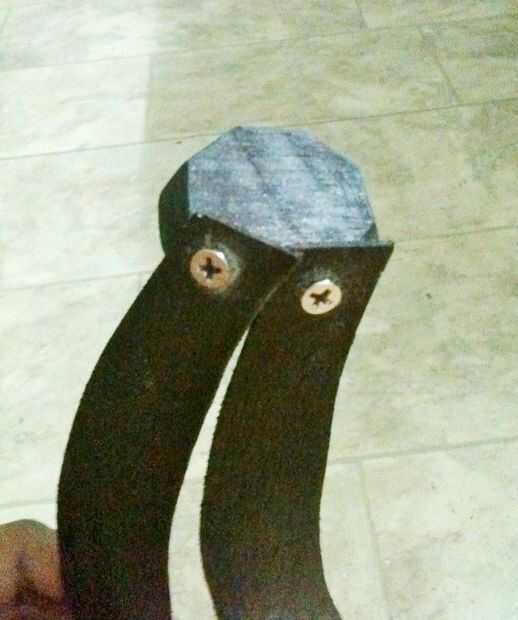Tome el octágono sin el agujero y coloque el extremo de una curvan en el lado it...drill y tornillo... luego colocar la otra curva ligeramente detrás de la primera curva... ver imagen.