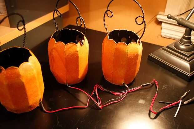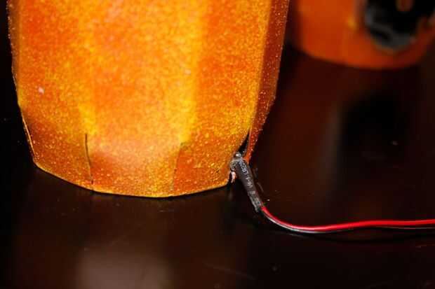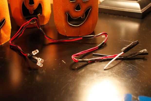 En los extremos de cada cableado de los LEDs, cables de grupo rojo con uno al otro, después de despojarlos con seguridad, que no tira el alambre hacia fuera (estos son los cables de calibre 22).
