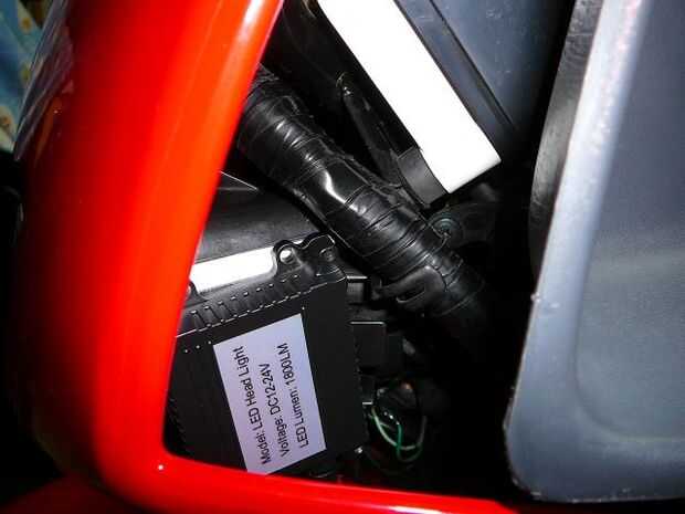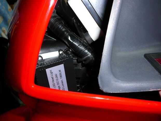 Una vez que todo está abotonado para arriba en la parte posterior de la linterna de la vivienda te puede volver a instalar la chimenea superior en la parte delantera de la moto. Asegúrese de comprobar que ninguno de los cables está obstruido o apretado, y que ninguna de las nuevas piezas interfiere con otra cosa en tu moto. Lo único en mi moto que no es fábrica de la chimenea superior es el voltímetro LCD instalado en mi indicador de bisel, pero si usted tiene cualquiera de las partes instalado en tu moto puede que necesite comprobar holguras aquí y modificar en consecuencia la instalación. Corrí el cableado de fábrica para los conectores linterna detrás el protector de plástico negro que enmarca el interior detrás de la rueda delantera. Los conectores de sentarse detrás del orificio de la chimenea superior para las aberturas de la señal de la vuelta de la fábrica y son fáciles de conectar después de todo se ha instalado.