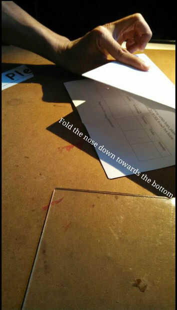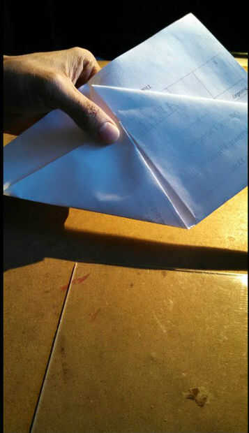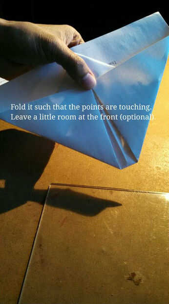 - Doble las alas hacia el partido de la longitud de la parte inferior. (Longitud del ala es de preferencia, he visto luces de ala más larga y más corta. Experimentar y ver qué pasa)