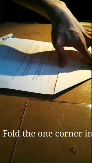 - Doblar las dos esquinas hacia abajo otra vez dejando un pequeño espacio para la cosa flappy doblar para arriba