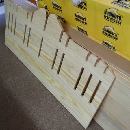 Comenzar cortando a su diseño en el panel posterior [A]. Tenía una hoja de repuesto de pino que he usado, pero ha especificado mdf de 16mm en la lista de corte. Con los recientes problemas con pino, recomiendo que utilices MDF para este proyecto. Para los lectores en el extranjero puede sustituir con su elección de material y simplemente ajuste las medidas para adaptarse.