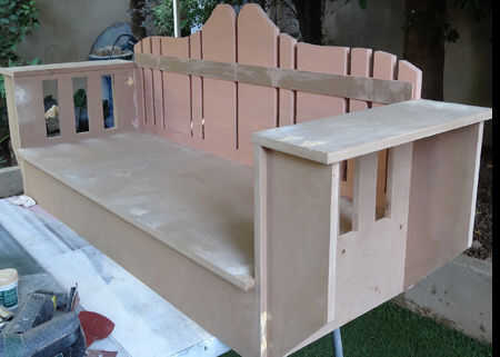 Imagen: Completa el swing con nuevo imprimada con imprimación de madera de pino. Si usas pinturas (acrílicos) a base de agua es importante preparar la madera antes de pintar. Si no, la madera absorbe la humedad de la pintura y se hinchan.