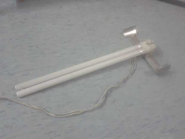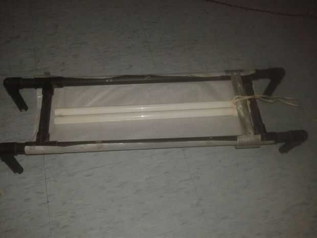 La luz PLL cuelga forma el otro extremo aplicar peso sobre el papel. Por lo tanto. Utilizar un hilo o un alambre de curva para atar a la sección de puente del marco como se muestra en la cuarta imagen.