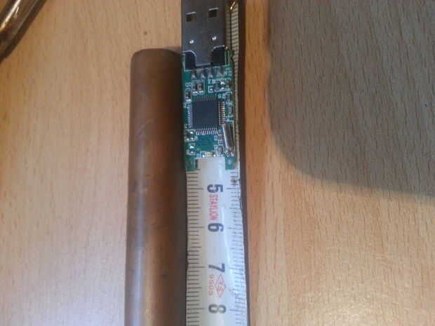 Cortar el tubo de cobre a la longitud de la memoria usb.