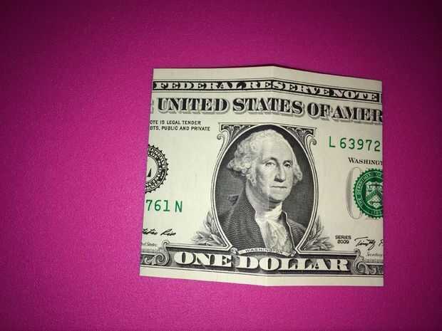 Fácil Dollar Bill Origami corazón (3 / 8 paso)