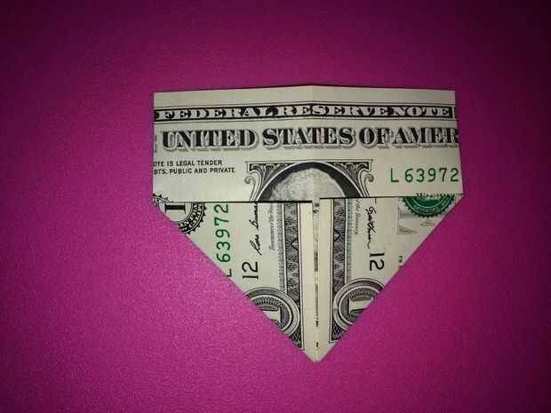 Fácil Dollar Bill Origami corazón (4 / 8 paso)