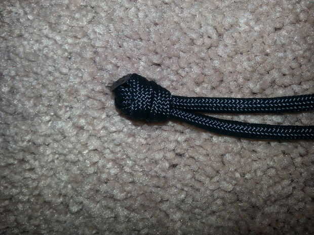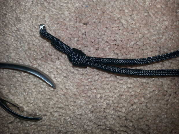 Tomar la pieza que mide para la muñeca. Un nudo en el extremo abierto de cable de thr. Corte cordón ejecutivos y quemar.