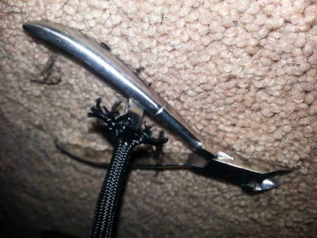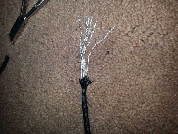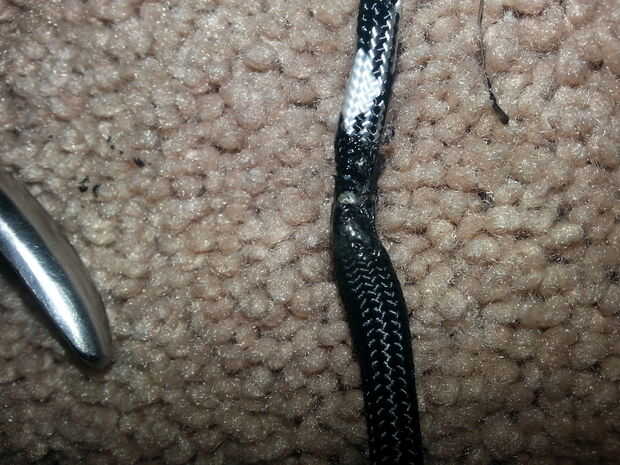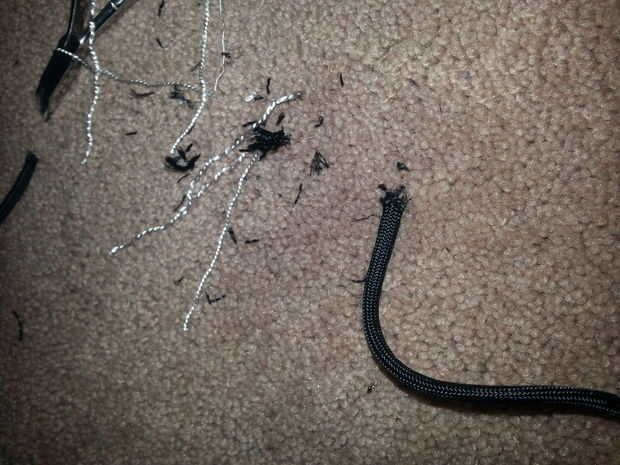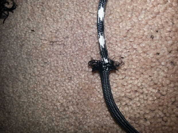 Extraer cerca de dos pulgadas de la base interior blanco y luego cortar. Luego ampliarla con la parte más limpia uñas de las pinzas. Meter otro color en la parte hueca de la paracord. Cuando están en quemar y los funden.