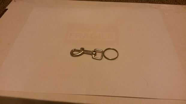 Toma el llavero y gancho a la pieza cuadrada de la correa