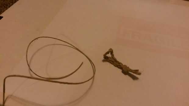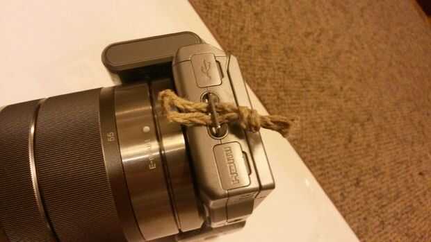 Tuve alguna cadena de cáñamo al azar de mentira en mi escritorio. Así ocurre que cuando trenzado en una trenza de 3 cordones clásicos (||| poner a la izquierda en medio X| Entonces puso derecho sobre nuevo centro | X repetición etc..) hecho lo suficientemente delgada y más que suficiente para sostener la cámara mientras aún conexión a través del ojal de la correa. Trenza de 4 en vale la pena.