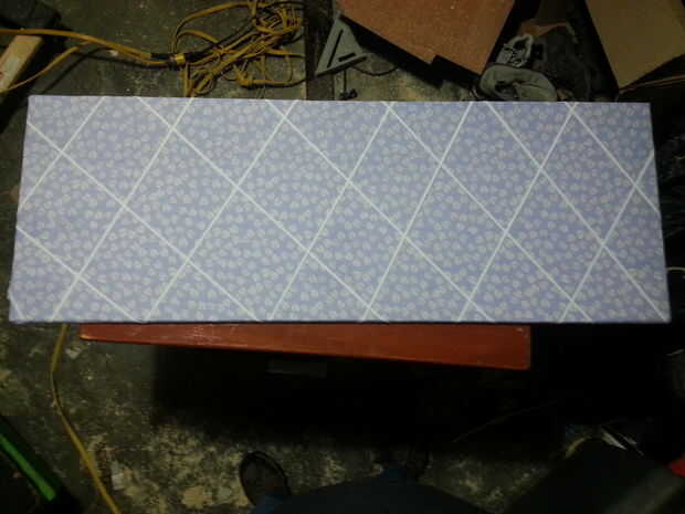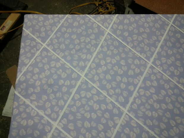 este es un tablero de tela cubierto con bandas elásticas usado para sostener fotos para pantallas de cambio fácil.
