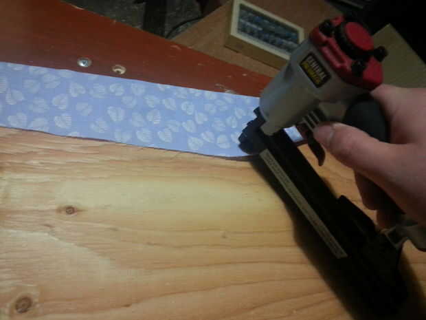 A continuación estire a la tela sobre el borde opuesto y evitar las arrugas y que el borde de la grapa. El siguiente es las esquinas.