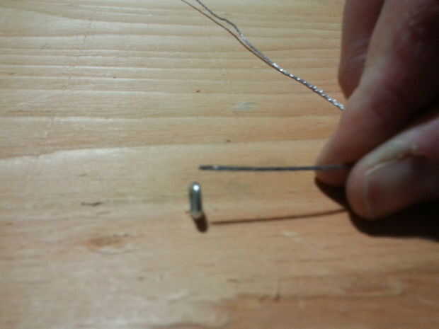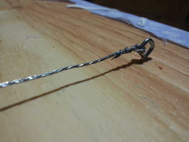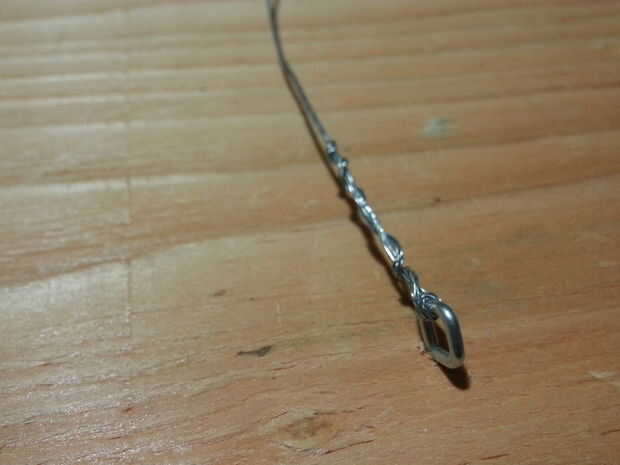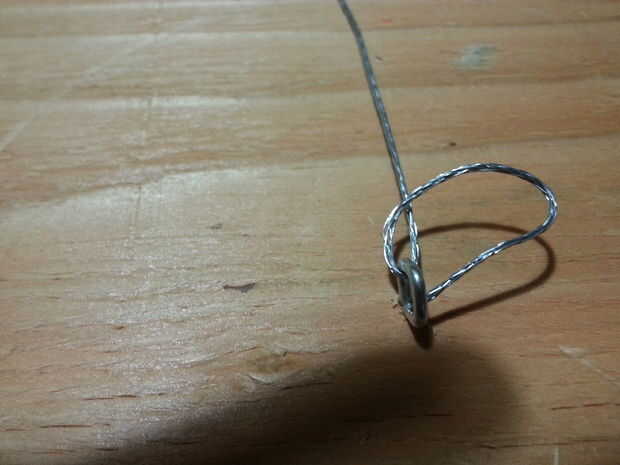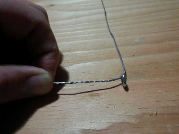 A continuación ejecute el cable por el ojo y doblar que sobre la entrada cable 90 grados y el abrigo alrededor de una vez entonces cadena a través del ojo. Luego doblar en 90 otra vez y envuélvalo alrededor varias veces para bloquearlo. Lo mismo en el otro lado.