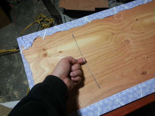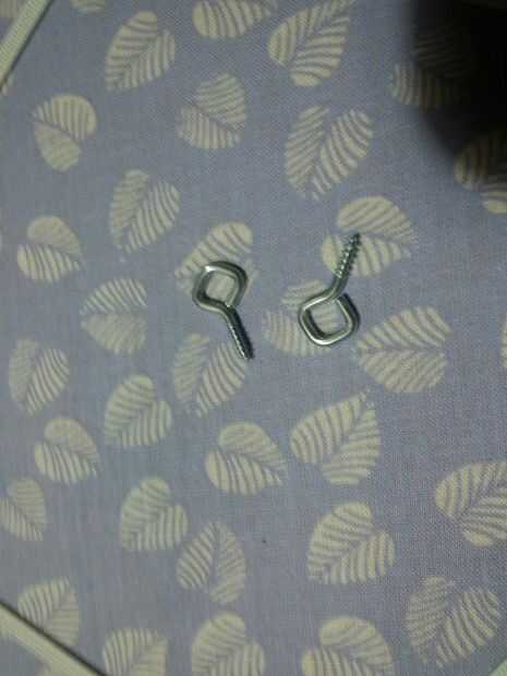 En primer lugar atornillar los tornillos de dos ojos en la parte posterior de la Junta. Asegúrese de que los ojos se alinean horizontalmente con la Junta.