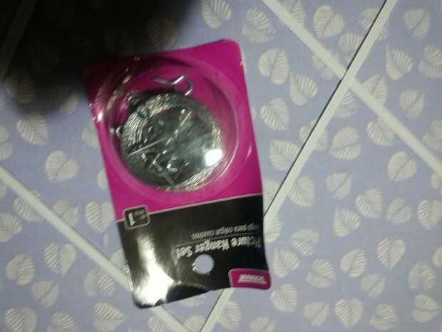 Cable imagen colgante kits vienen con un gancho que se clava en la pared de la thr. Estos funcionan bien pero usaba un largo tornillo de drywall en un poste.