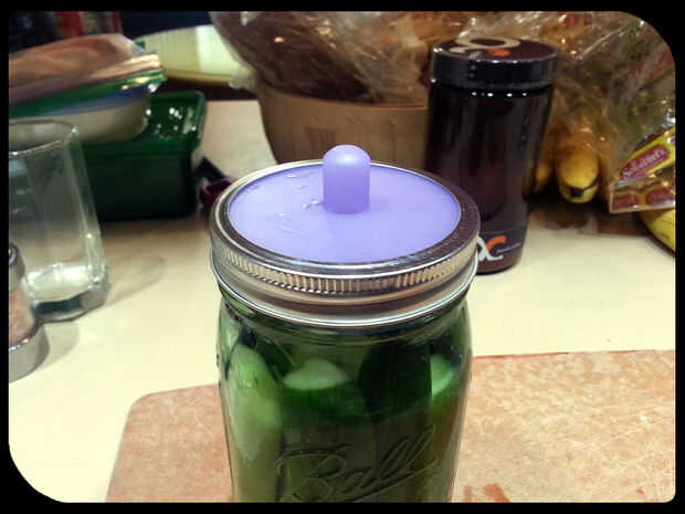 Después de dos semanas, sus fácil pepinillos ahora están listos para disfrutar! Sustituir la tubería de salmuera con una tapa de tarro de masón regular y guardar en la nevera.