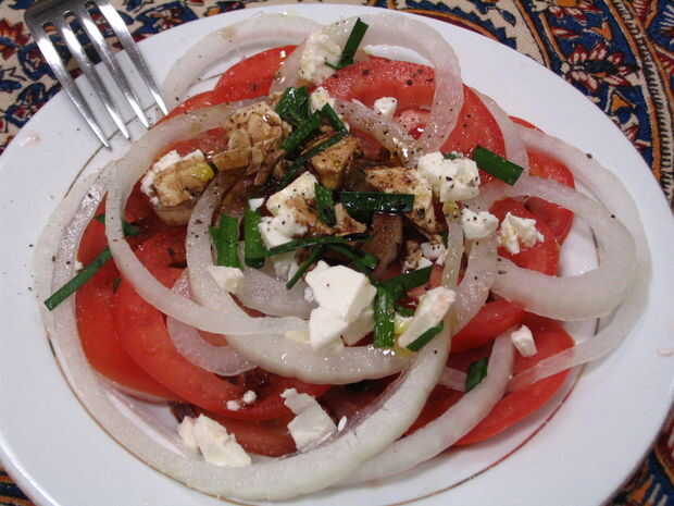 usted puede conseguir así muchos previamente lavaron, picadas, productos experimentados en el supermercado, apenas tienes que sacar un cuchillo para hacer esta comida. En lugar de tener que cortar aceitunas, cebollas y tomates, puedo recoger un tarro