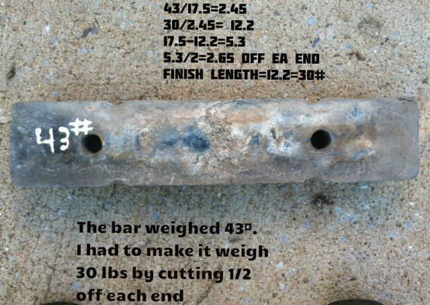 El lingote de plomo pesa 30 libras y es aproximadamente 4" w X 13" largo X 2" de grosor. Él y varios otros fueron utilizados originalmente en un coche de carreras para añadir peso para ruedas traseras. Fue hecho por la fusión de contrapesos en una cubierta de la válvula de Chevy.