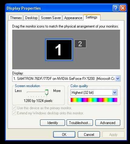 Ahora está abierta la ventana de "Propiedades de pantalla", haz click en la pestaña "Configuración" y ver lo que la resolución de pantalla es. En mi caso es 1280 por 1024 píxeles. Tome nota de lo que su configuración y luego haz click en el botón "Cancelar".