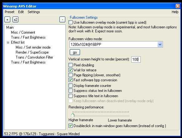 Para el "modo de vídeo de pantalla completa:" campo, he seleccionado "1280 x 1024, ya que mi escritorio es de 1280 X 1024. Voy a ser honesto, no estoy seguro de lo que la "está parado para, hay también un" ajuste. De todos modos, también tendrá la opción de "Altura rendir (por ciento) de la pantalla Vertical" a 100. Ahora haga clic en el botón "ir". La pantalla que parpadea durante un segundo, en blanco luego lentamente comienzan a mostrar colores y tal... poco a poco pero hay. Visualización de pantalla completa, para salir de esto, haga clic en la tecla "Esc" del teclado.
