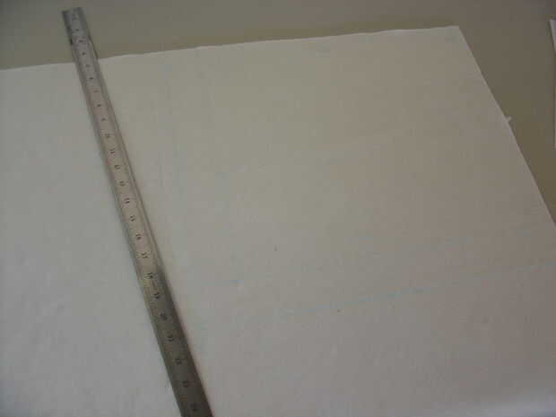Puede hacer que su bolsa como grande o pequeño como usted quiere, pero mi acabados dimensiones (ampliados) 16" de largo y 14" de ancho, así que marqué mi fieltro en 16,5" de largo, medido desde el doblez y 14.5" amplia.