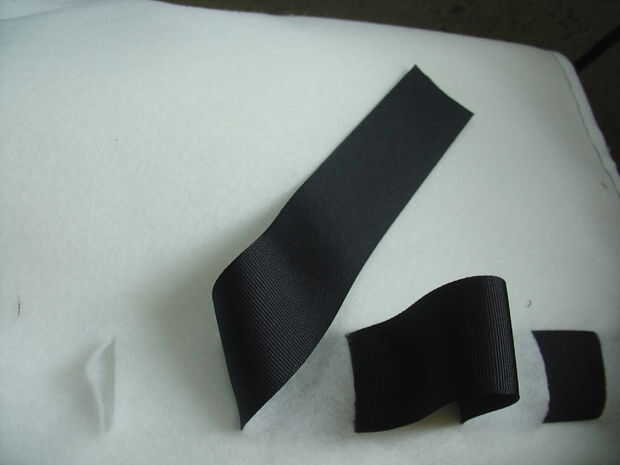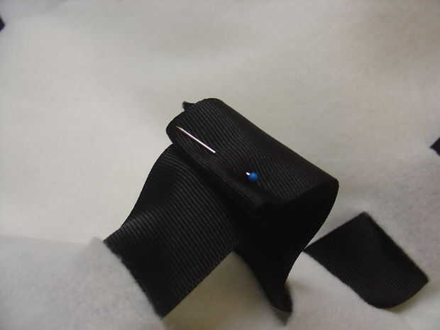 Doble los extremos sin acabar, uno arriba y otro abajo, y luego fijar los dos extremos juntos superpuestos ligeramente, con el inacabado termina en el centro. Unir los extremos (a mano o por máquina). Gire la cinta para la costura se esconde detrás de los de fieltro.