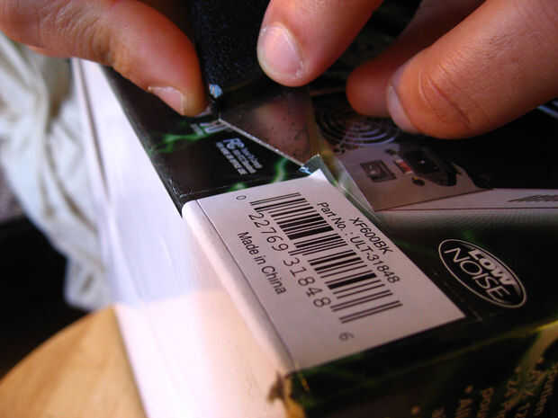 con la punta de su herramienta de corte de caja, levante la esquina del símbolo de UPC de la caja. Si observa que el borde rompe un poco, volver atrás un paso y cuenta un poco más.