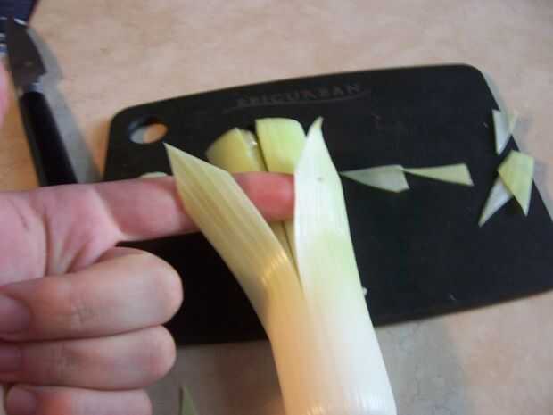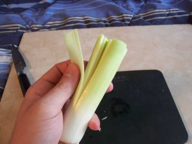 Agarrar la "hoja" exterior de su puerro (ver foto) y con sus tijeras corte un punto en cada uno de los 4 fuera de "hojas"