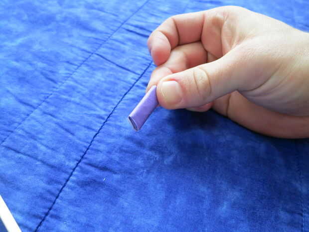 Aparte los palillos si vienen pegan y ruedan para arriba la envoltura a partir del extremo corto cerrado.